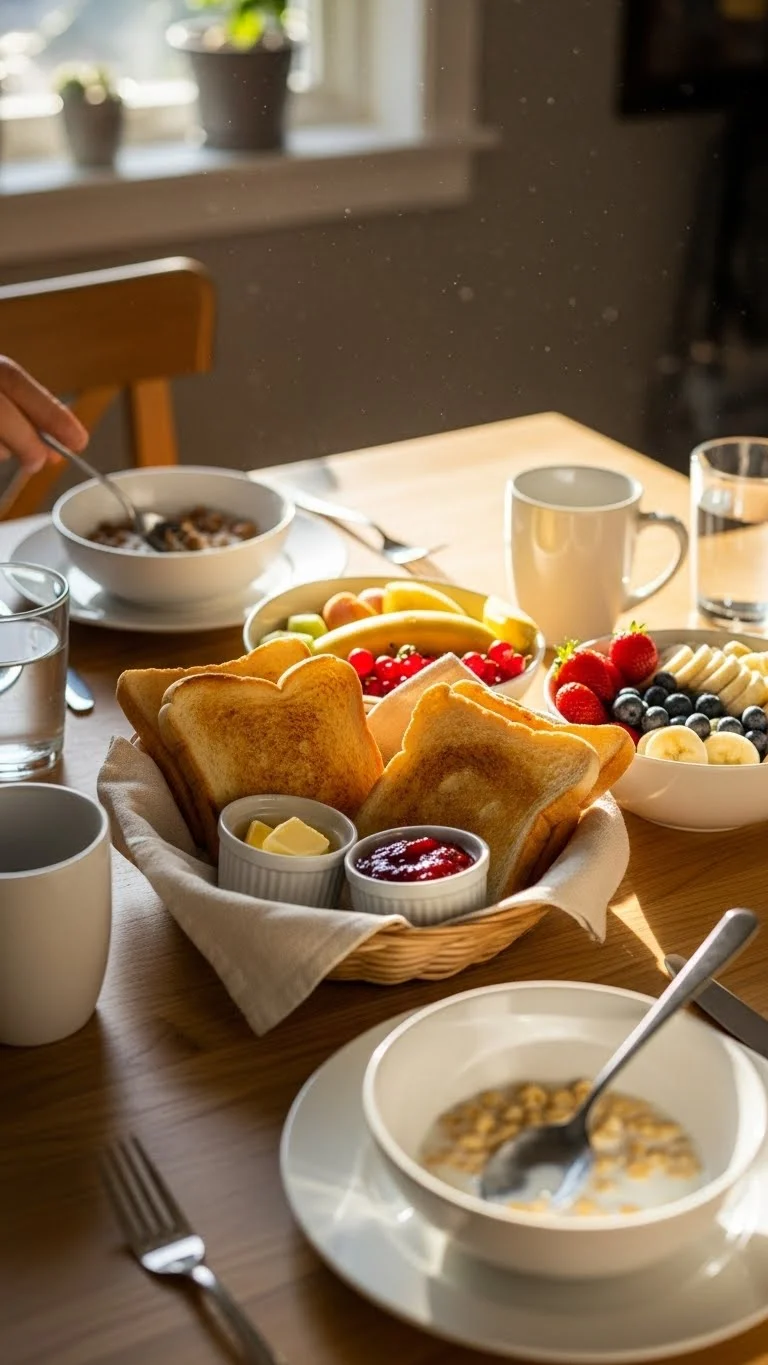 Serving breakfast in stages helps mornings feel less rushed. Start with fruit or toast while preparing the main meal. Hunger eases right away, which reduces crankiness. Kids stay calmer and more patient. This works well on busy school days. Use seasonal or frozen fruit to save money. Even small portions help. Parents gain time without pressure. Staggered serving keeps energy steady and turns breakfast into a smoother start instead of a race against the clock.