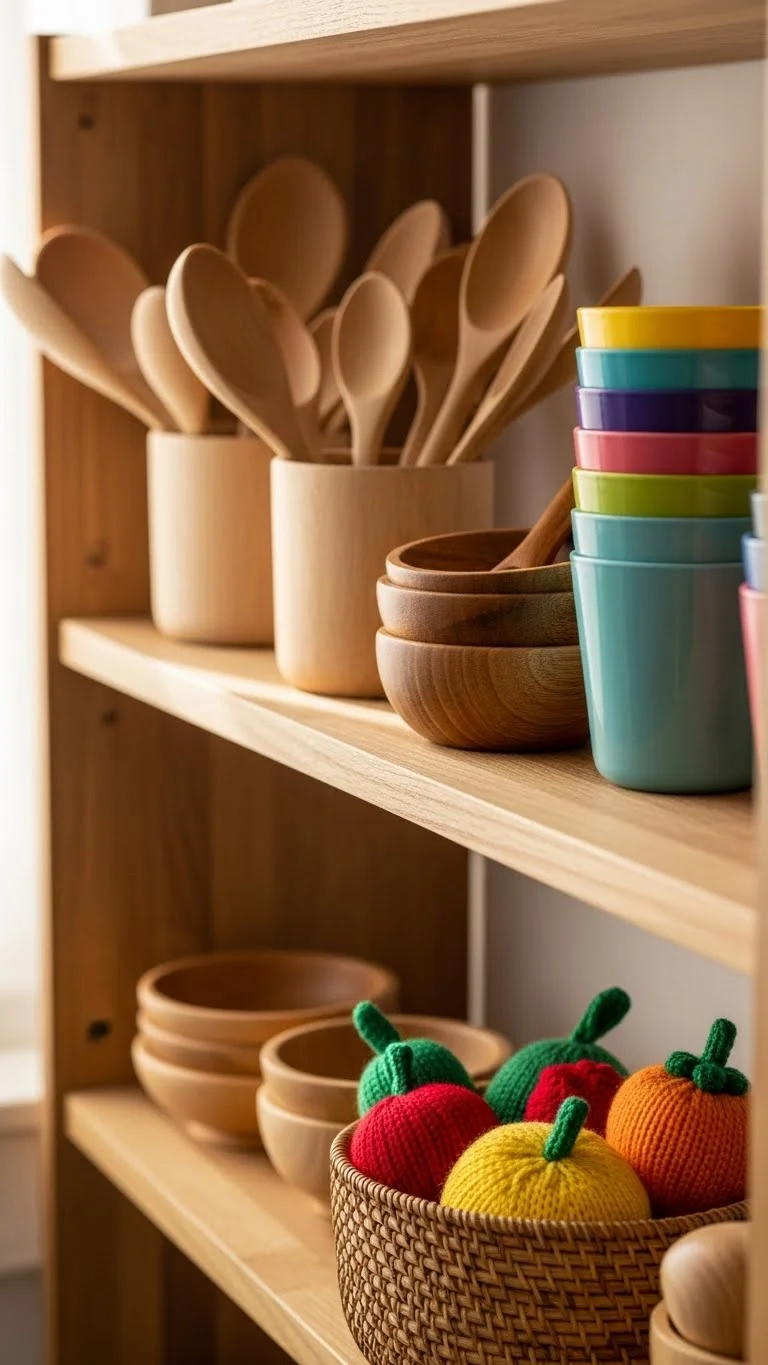 A “yes” shelf gives kids safe items they can explore freely. Everything on this shelf is allowed. No constant corrections. No worry. Fill it with everyday objects like wooden spoons, empty containers, soft cloths, or stacking cups. This works well during cooking or busy moments. You don’t need new toys. Use what you already have at home. When kids have freedom within clear limits, they stay focused longer. Parents gain breathing space while children play calmly and confidently.