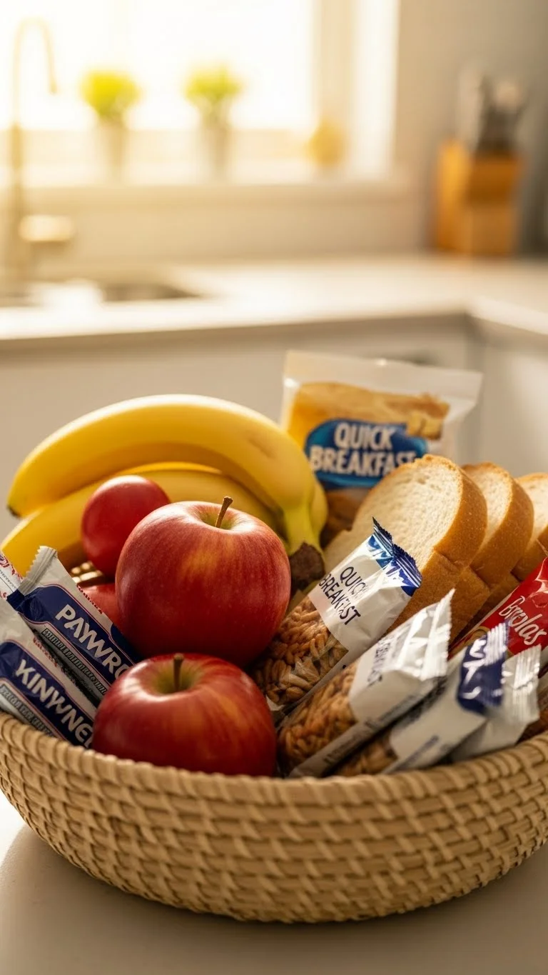 Mornings can unravel fast when breakfast takes too much thought. A grab-and-go breakfast box removes that pressure. Use one basket or plastic container and keep it stocked with simple items. Bananas, apples, bread, peanut butter, boiled eggs, or packaged snacks all work well. Place the box at eye level so kids can help themselves. This habit saves time and reduces arguments. No one waits for food to be made. You also avoid skipping breakfast on rushed days. Refill the box once or twice a week during grocery unpacking. Use what fits your budget. Store-brand items work just fine. The goal is speed, not variety. When mornings feel calmer, the whole day starts better.
